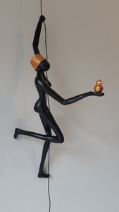 2023Het duo hangt aan een staaldraad van ongeveer 215 cm lengte. Het minimalistische ophang systeem wordt bij geleverd. Een duo wordt in verschillende houdingen gemaakt, u kunt contact opnemen om van de recente uitvoeringen een foto te ontvangen.